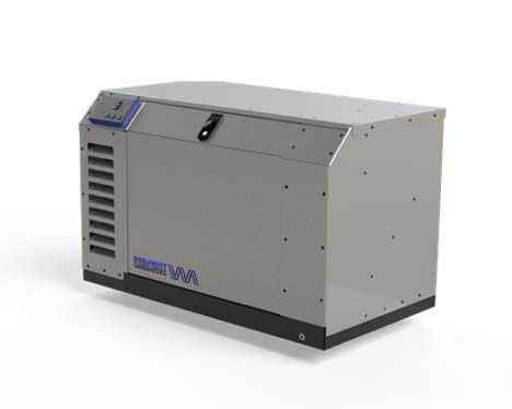 12 kW enclosed generator with noise-reducing housing for quiet operation in commercial and specialty applications.
