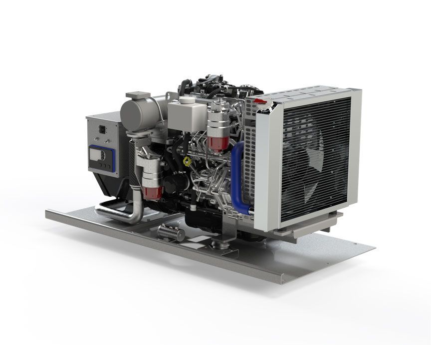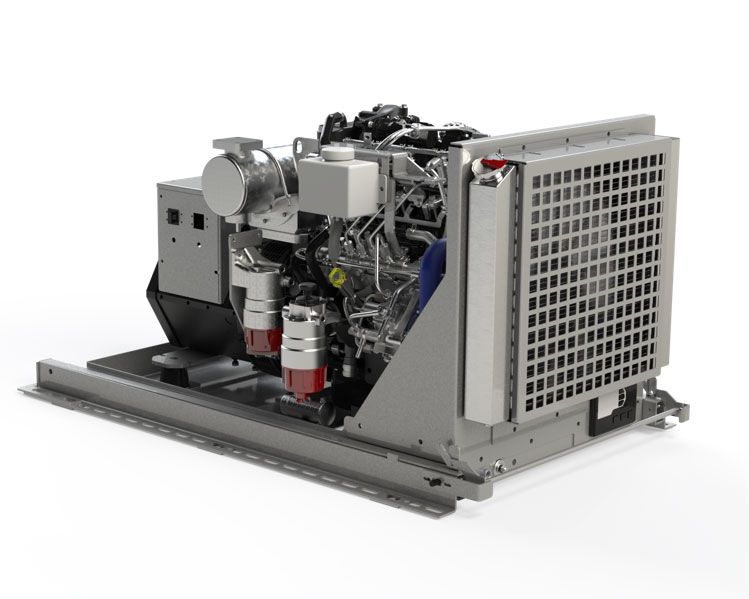 15 kW open diesel generator powered by a turbocharged 4-cylinder engine. Designed for high-demand mobile equipment.