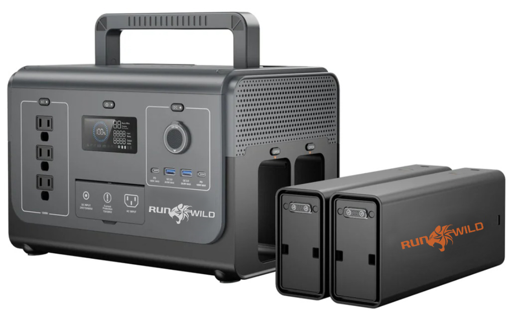 High-capacity 1200W power station using two RUNWILD Energy Bar Batteries to handle larger loads and longer runtimes for RVs, job sites, and emergency backup.