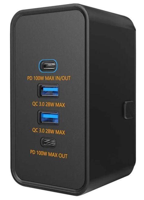80W, 100V AC socket module that connects to a RUNWILD Energy Bar Battery so users can plug in and power compatible small household or electronic devices.